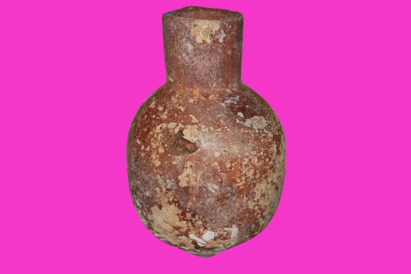 Dimensions: 4 ¼ inches tall, 3 inches wide, weighs 177 grams. Provenance: Excavated in Jerusalem in the 1980’s. Acquired by the Hamadian Antiquities Gallery in The Old City of Jerusalem. Export to the United States approved by the Israeli Antiquities Authority in 2025. Acquired by The Artifact City Collection in September 2025. Description: Redware rounded bottom juglet. Mineral deposits indicative of approximately 3000 years of underground burial. Small rim chips and surface loss. 1 inch chip on the handle. No repairs or restorations found. Overall Good condition. King David is often looked upon as the most successful military conqueror in the history of the Israelite nation. By the end of his reign in 971 BC, the boundaries of Israel and the neighboring vassal kingdoms who paid tribute to David stretched across the Fertile Crescent from the Wadi of Egypt to the River Euphrates.