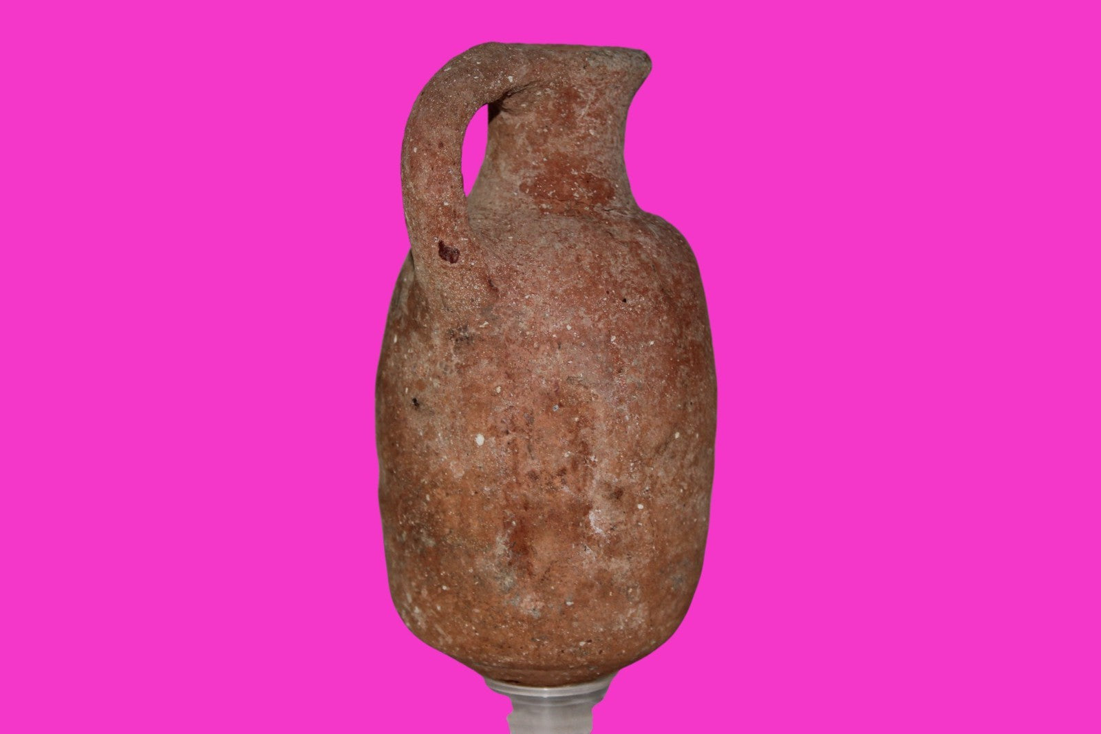 Dimensions: 4 ¼ inches tall, 2 ¾ inches wide, weighs 173 gramsProvenance: Excavated in Jerusalem in the 1980’s. Acquired by the Hamadian Antiquities Gallery in The Old City of Jerusalem. Export to the United States approved by the Israeli Antiquities Authority in 2025. Acquired by The Artifact City Collection in September 2025.Description: Redware terra cotta jug. Mineral deposits indicative of approximately 3000 years of underground burial. Small rim chips and surface loss. No repairs or restorations found. Overall Outstanding condition. King David is often looked upon as the most successful military conqueror in the history of the Israelite nation. By the end of his reign in 971 BC, the boundaries of Israel and the neighboring vassal kingdoms who paid tribute to David stretched across the Fertile Crescent from the Wadi of Egypt to the River Euphrates.