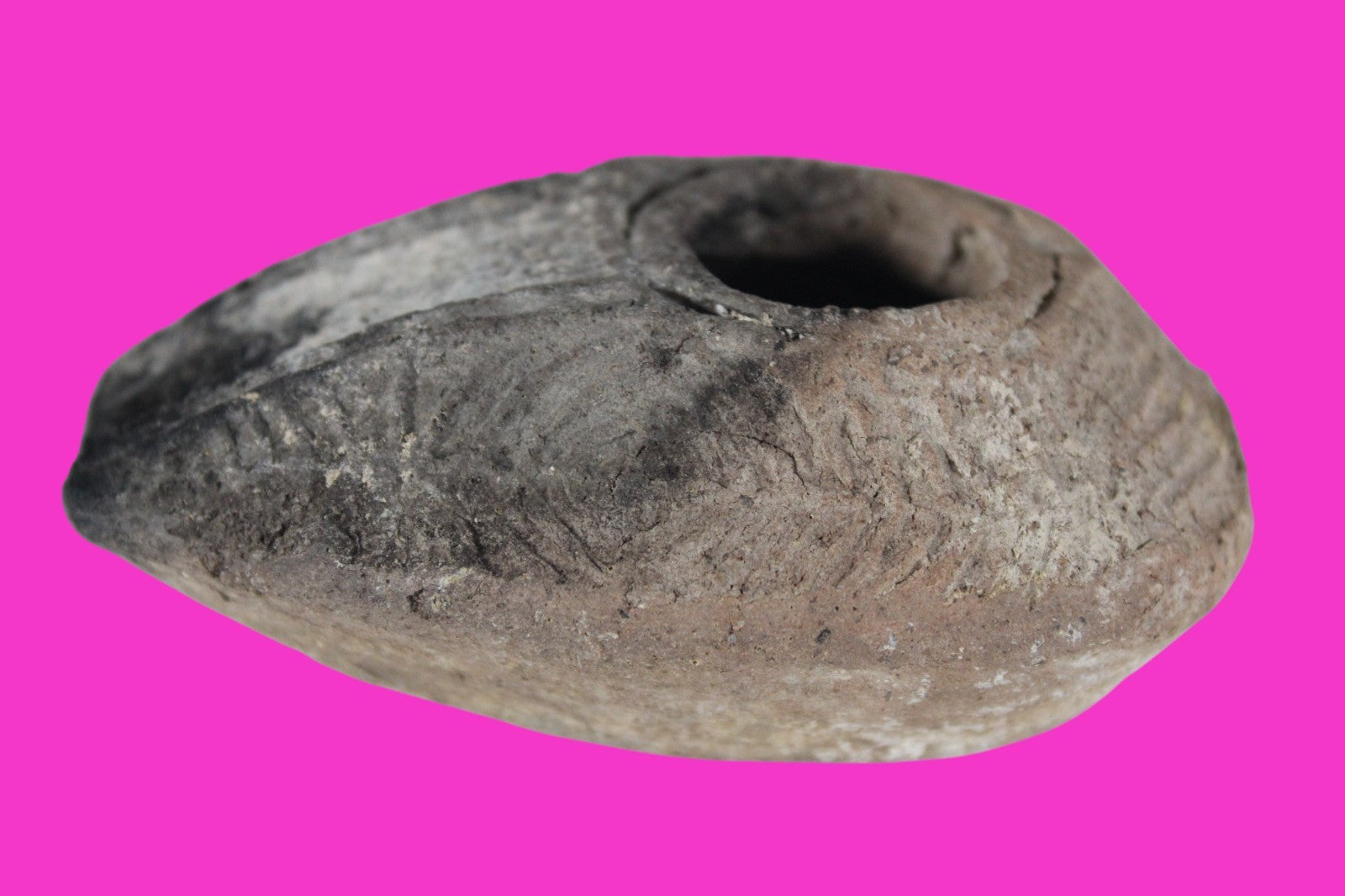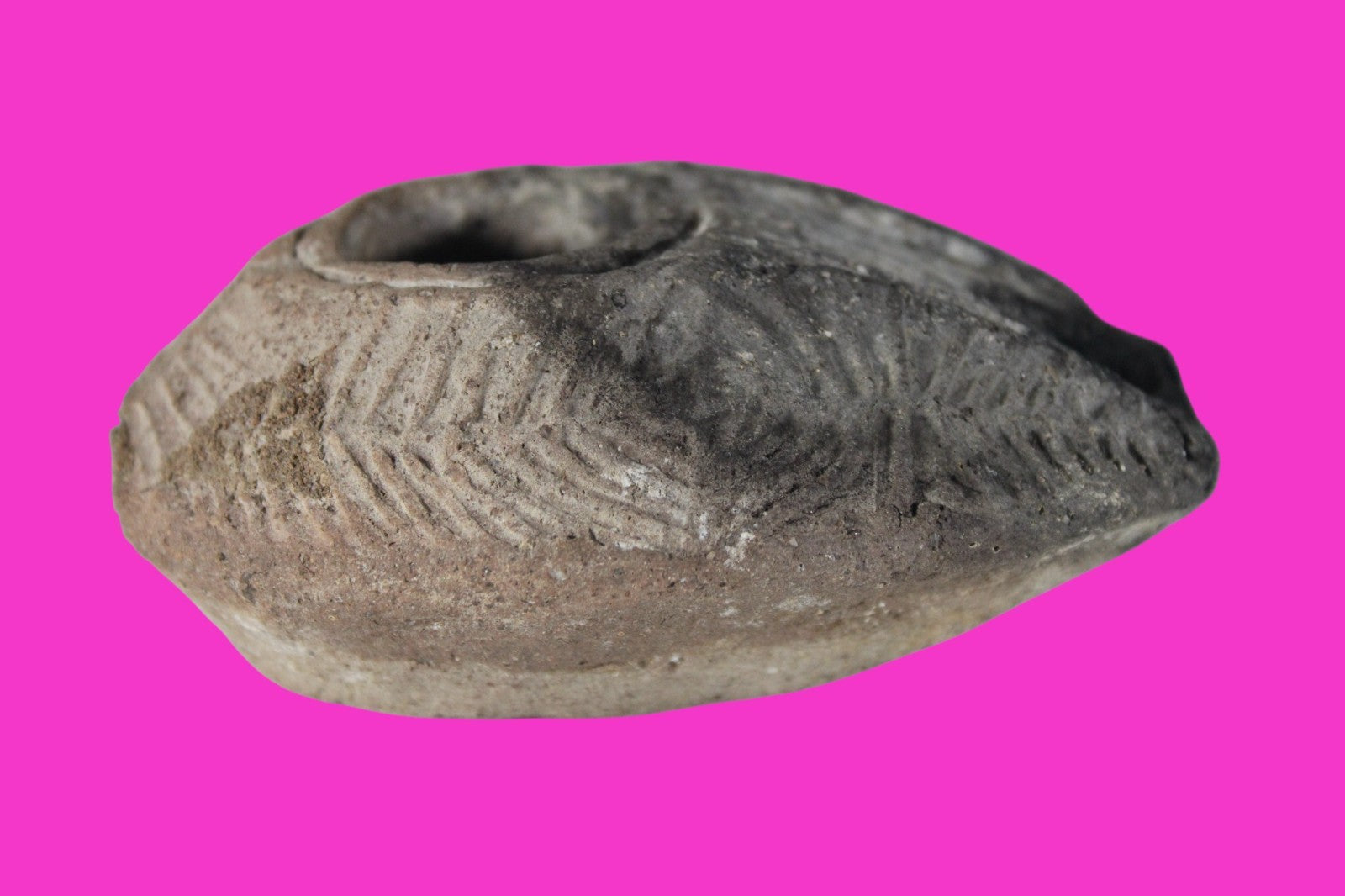 Dimensions: 3 ½ inches long, 2 ¼ inches wide, 1 ½ inches tall, weighs 52 grams. Provenance: Excavated in Judea in the late 1990’s. Ex Private Tel Aviv Collection. Acquired by the Hamadian Antiquities Gallery in The Old City of Jerusalem. Export to the United States approved by the Israeli Antiquities Authority in 2025. Acquired by The Artifact City Collection in September 2025. Description: Terracotta oil lamp made from a two-part mold. Oil from animal fat or olives were used with a wick to provide lighting. Oil lamps were mass produced in large quantities throughout the Holy Land and surrounding areas. Their use was significant in both Jewish and early Christian religious ceremonies. They were the equivalent of today’s “light bulbs”.