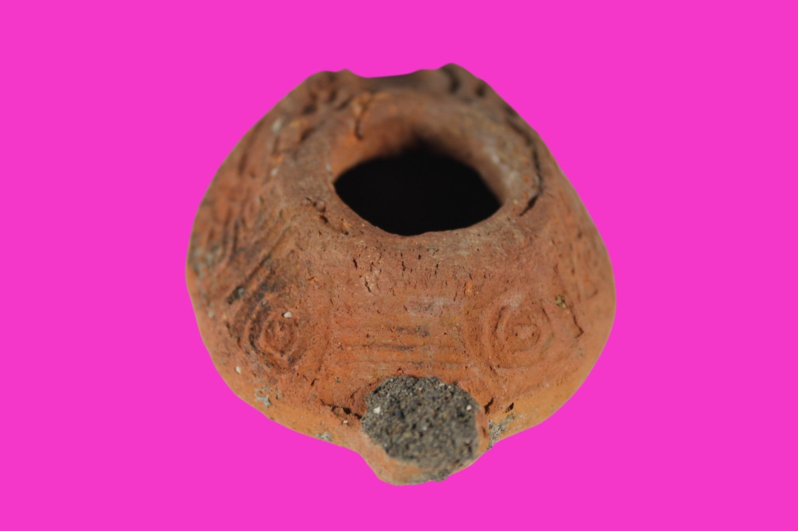 Dimensions: 3 ½ inches long, 2 ¼ inches wide, 1 ¼ inches tall, weighs 76 grams. Provenance: Excavated in Judea in the late 1990’s. Ex Private Tel Aviv Collection. Acquired by the Hamadian Antiquities Gallery in The Old City of Jerusalem. Export to the United States approved by the Israeli Antiquities Authority in 2025. Acquired by The Artifact City Collection in September 2025. Description: Terracotta oil lamp made from a two-part mold. Oil from animal fat or olives was used with a wick to provide lighting. Oil lamps were mass produced in large quantities throughout the Holy Land and surrounding areas. Their use was significant in both Jewish and early Christian religious ceremonies. They were the equivalent of today’s “light bulbs”.
