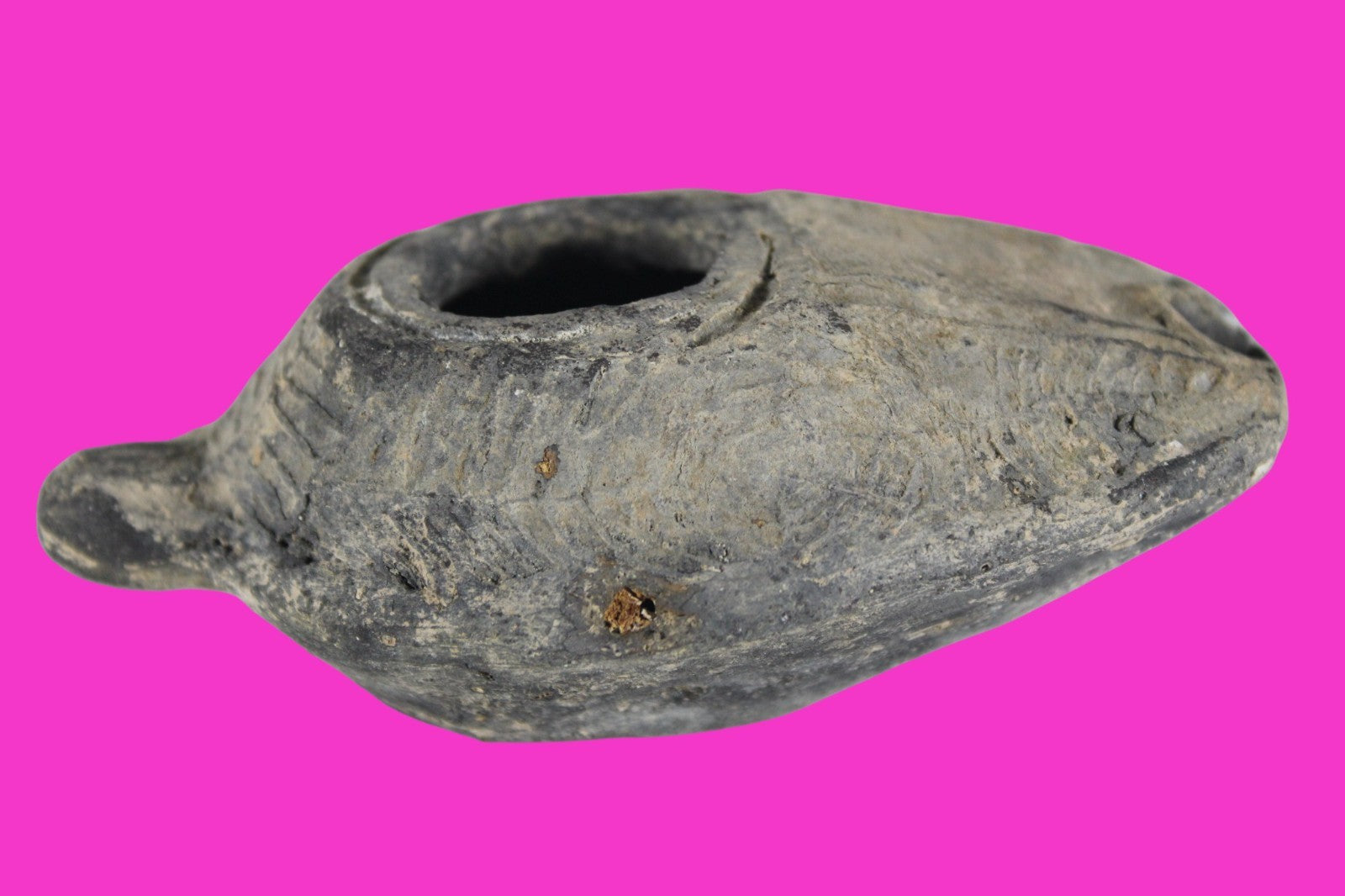 Dimensions: 3 ¾ inches long, 2 ¼ inches wide, 1 ¼ inches tall, weighs 69 grams. Provenance: Excavated in Judea in the late 1990’s. Ex Private Tel Aviv Collection. Acquired by the Hamadian Antiquities Gallery in The Old City of Jerusalem. Export to the United States approved by the Israeli Antiquities Authority in 2025. Acquired by The Artifact City Collection in September 2025. Description: Terracotta oil lamp made from a two-part mold. Oil from animal fat or olives were used with a wick to provide lighting. Oil lamps were mass produced in large quantities throughout the Holy Land and surrounding areas. Their use was significant in both Jewish and early Christian religious ceremonies. They were the equivalent of today’s “light bulbs”.