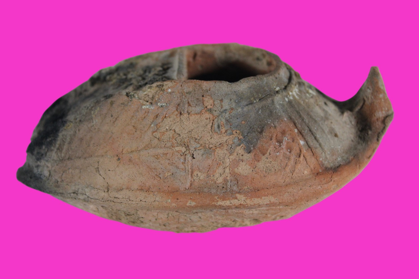 Dimensions: 4 inches long, 2 ½ inches wide, 1 ¾ inches tall, weighs 104 grams. Provenance: Excavated in Judea in the late 1990’s. Ex Private Tel Aviv Collection. Acquired by the Hamadian Antiquities Gallery in The Old City of Jerusalem. Export to the United States approved by the Israeli Antiquities Authority in 2025. Acquired by The Artifact City Collection in September 2025. Description: Terracotta oil lamp made from a two-part mold. Oil from animal fat or olives were used with a wick to provide lighting. Oil lamps were mass produced in large quantities throughout the Holy Land and surrounding areas. Their use was significant in both Jewish and early Christian religious ceremonies. They were the equivalent of today’s “light bulbs”.