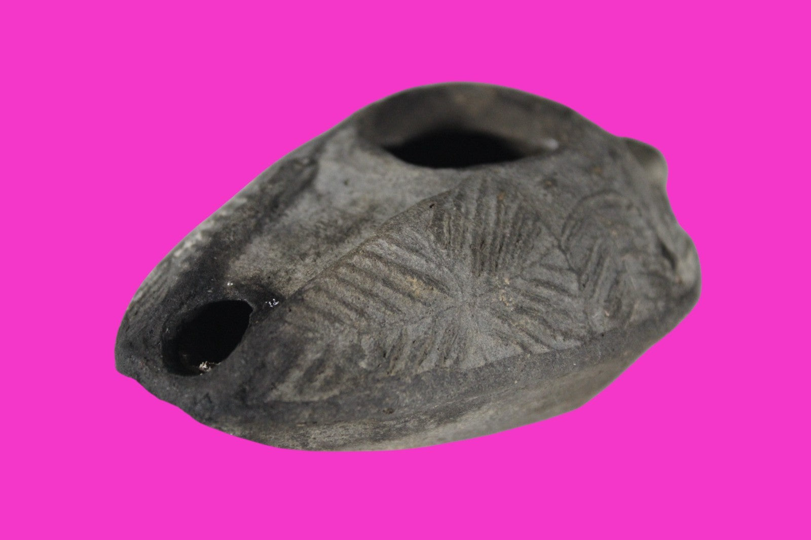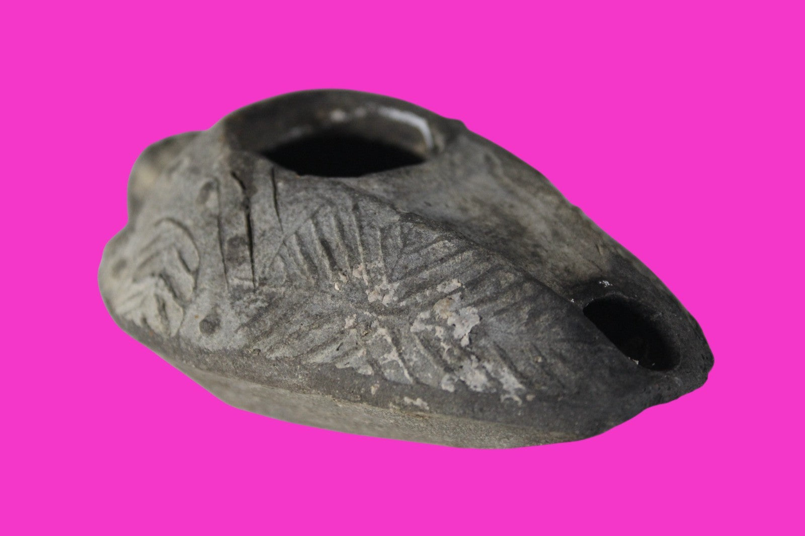 Dimensions: 3 ½ inches long, 2 ¼ inches wide, 1 ¼ inches tall, weighs 74 grams. Provenance: Excavated in Judea in the late 1990’s. Ex Private Tel Aviv Collection. Acquired by the Hamadian Antiquities Gallery in The Old City of Jerusalem. Export to the United States approved by the Israeli Antiquities Authority in 2025. Acquired by The Artifact City Collection in September 2025. Description: Terracotta oil lamp made from a two-part mold. Oil from animal fat or olives was used with a wick to provide lighting. Oil lamps were mass produced in large quantities throughout the Holy Land and surrounding areas. Their use was significant in both Jewish and early Christian religious ceremonies. They were the equivalent of today’s “light bulbs”.