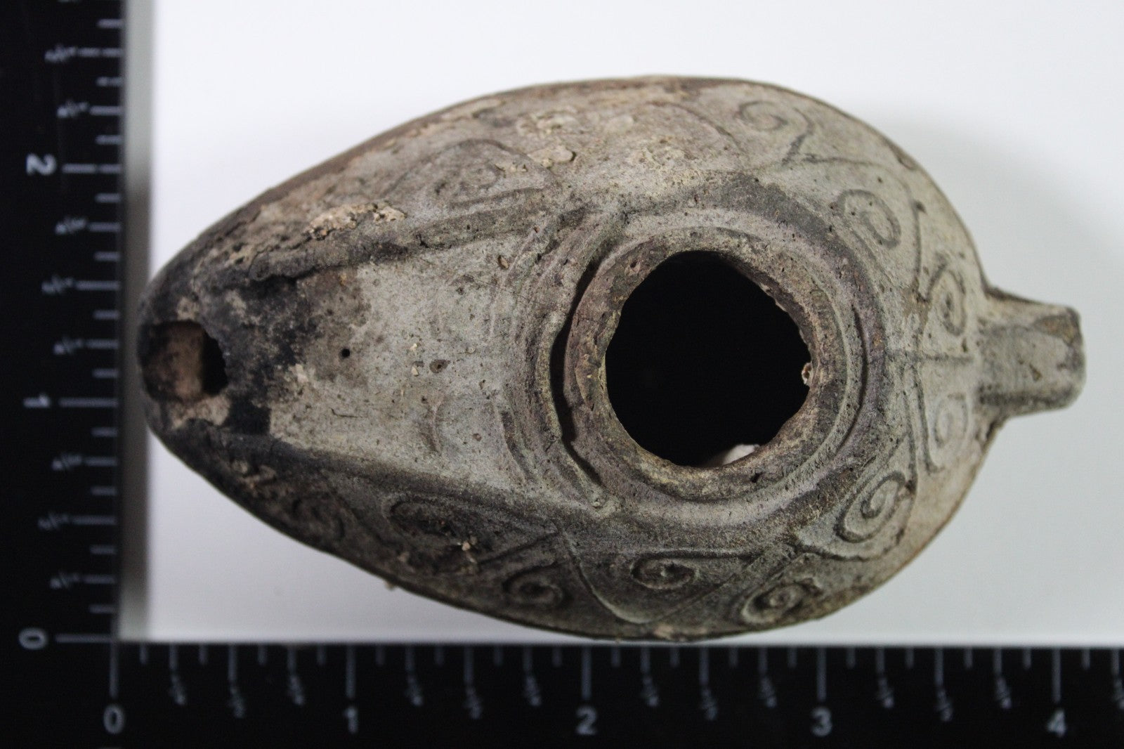 Dimensions: 3 ¾ inches long, 2 ¼ inches wide, 1 ¼ inches tall, weighs 87 grams. Provenance: Excavated in Judea in the late 1990’s. Ex Private Tel Aviv Collection. Acquired by the Hamadian Antiquities Gallery in The Old City of Jerusalem. Export to the United States approved by the Israeli Antiquities Authority in 2025. Acquired by The Artifact City Collection in September 2025. Description: Terracotta oil lamp made from a two-part mold. Oil from animal fat or olives were used with a wick to provide lighting. Oil lamps were mass produced in large quantities throughout the Holy Land and surrounding areas. Their use was significant in both Jewish and early Christian religious ceremonies. They were the equivalent of today’s “light bulbs”.