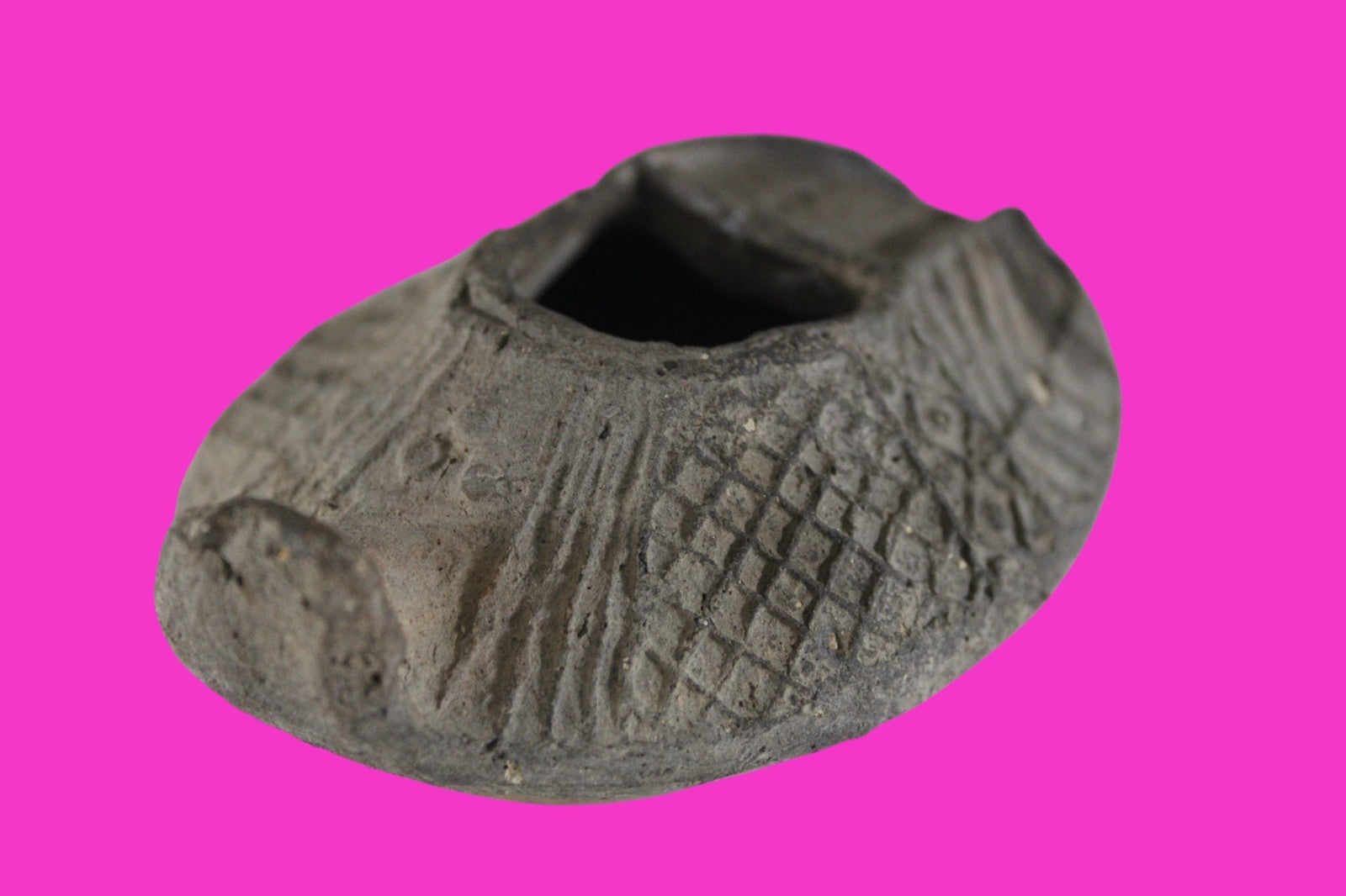 Dimensions: 3 ¾ inches long, 2 ½ inches wide, 1 ½ inches tall, weighs 78 grams. Provenance: Excavated in Judea in the late 1990’s. Ex Private Tel Aviv Collection. Acquired by the Hamadian Antiquities Gallery in The Old City of Jerusalem. Export to the United States approved by the Israeli Antiquities Authority in 2025. Acquired by The Artifact City Collection in September 2025. Description: Terracotta oil lamp made from a two-part mold. Oil from animal fat or olives were used with a wick to provide lighting. Oil lamps were mass produced in large quantities throughout the Holy Land and surrounding areas. Their use was significant in both Jewish and early Christian religious ceremonies. They were the equivalent of today’s “light bulbs”.