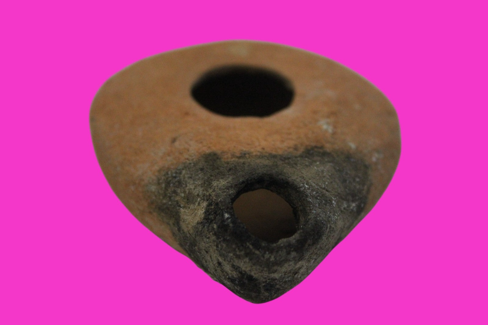 Dimensions: 3 inches long, 2 ½ inches wide, 1 inch tall, weighs 52 grams. Provenance: Excavated in Judea in the late 1990’s. Ex Private Tel Aviv Collection. Acquired by the Hamadian Antiquities Gallery in The Old City of Jerusalem. Export to the United States approved by the Israeli Antiquities Authority in 2025. Acquired by The Artifact City Collection in September 2025. Description: Terracotta oil lamp made from a two-part mold. Oil from animal fat or olives were used with a wick to provide lighting. Oil lamps were mass produced in large quantities throughout the Holy Land and surrounding areas. Their use was significant in both Jewish and early Christian religious ceremonies. They were the equivalent of today’s “light bulbs”.