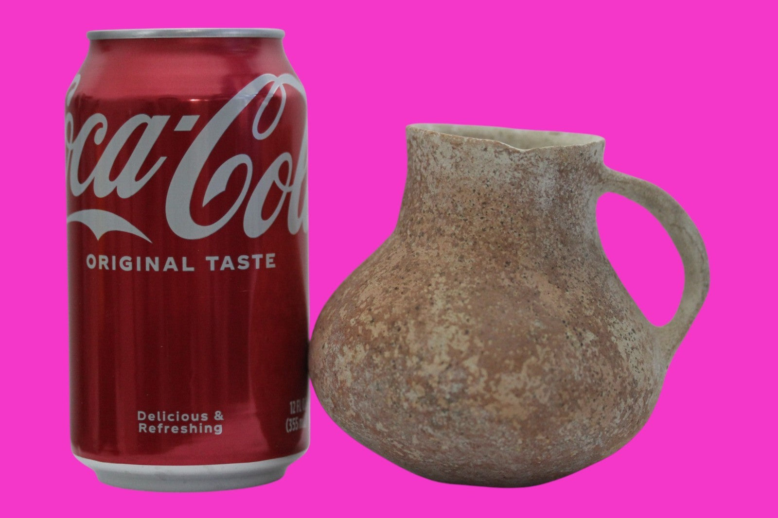 Dimensions: 3 ¾ inches tall, 4 ¼ inches wide, weighs 124 grams Provenance: Ex. Private Miami, Florida collection. Acquired in the 1990’s. Acquired by John McIntosh, MSE, MBA, Ancient Artifacts & Treasures, Winter Park, Florida in 2017. Consigned to The Artifact City Collection 2025. Description: Redware juglet with a bulbous bottom and one handle. No repairs or restorations were found. Small rim chips and abrasions due to everyday use. Mineral encrustations indicative of about 2000 years of underground burial. Overall excellent condition.