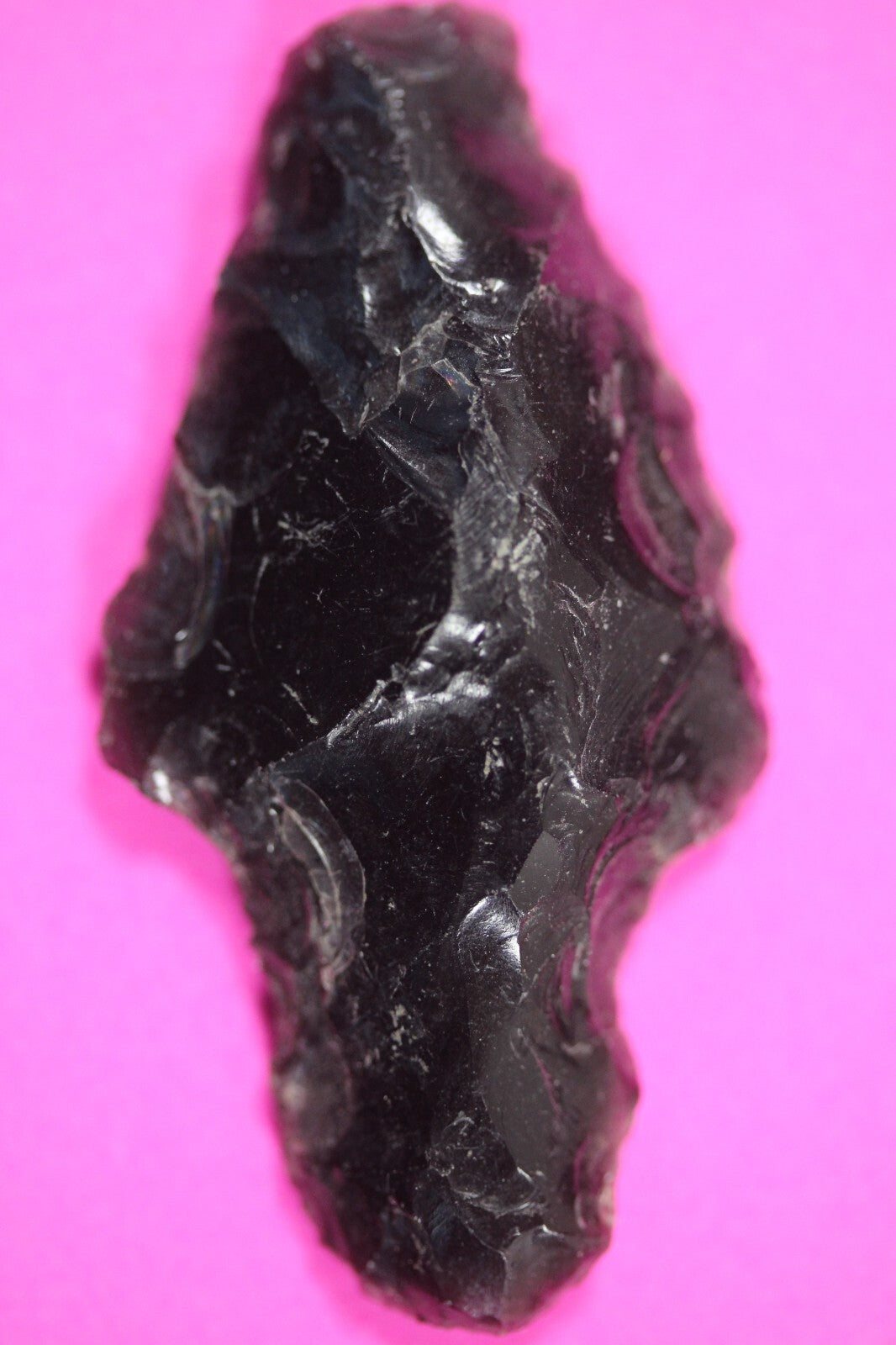 This obsidian arrowhead was excavated from an ancient battleground in Tenochtitlan, Mexico (Mexico City). Provenance: Ex. Borenstein Art Gallery, New Orleans, 1960’s to 1970’s. Ex. Ancient Artifacts & Treasures, Winter Park, FL, acquired in 2004.This arrowhead was used by Montezuma’s Aztec Warriors against Cortez’s Spanish Conquistadors in 1521 AD during the fall of Tenochtitlan. This was the Aztec’s last stand against Cortez.Obsidian arrowheads had no chance against the Conquistadors armor.The Aztecs were annihilated. This battle marked the end of the once mighty Aztec Empire.