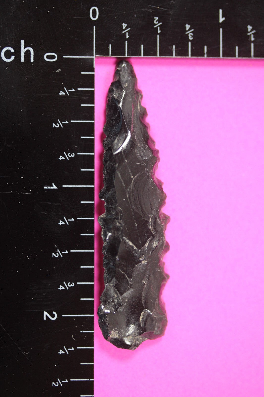 This obsidian arrowhead was excavated from an ancient battleground in Tenochtitlan, Mexico (Mexico City). Provenance: Ex. Borenstein Art Gallery, New Orleans, 1960’s to 1970’s. Ex. Ancient Artifacts & Treasures, Winter Park, FL, acquired in 2004.This arrowhead was used by Montezuma’s Aztec Warriors against Cortez’s Spanish Conquistadors in 1521 AD during the fall of Tenochtitlan. This was the Aztec’s last stand against Cortez.Obsidian arrowheads had no chance against the Conquistadors armor.The Aztecs were annihilated. This battle marked the end of the once mighty Aztec Empire.