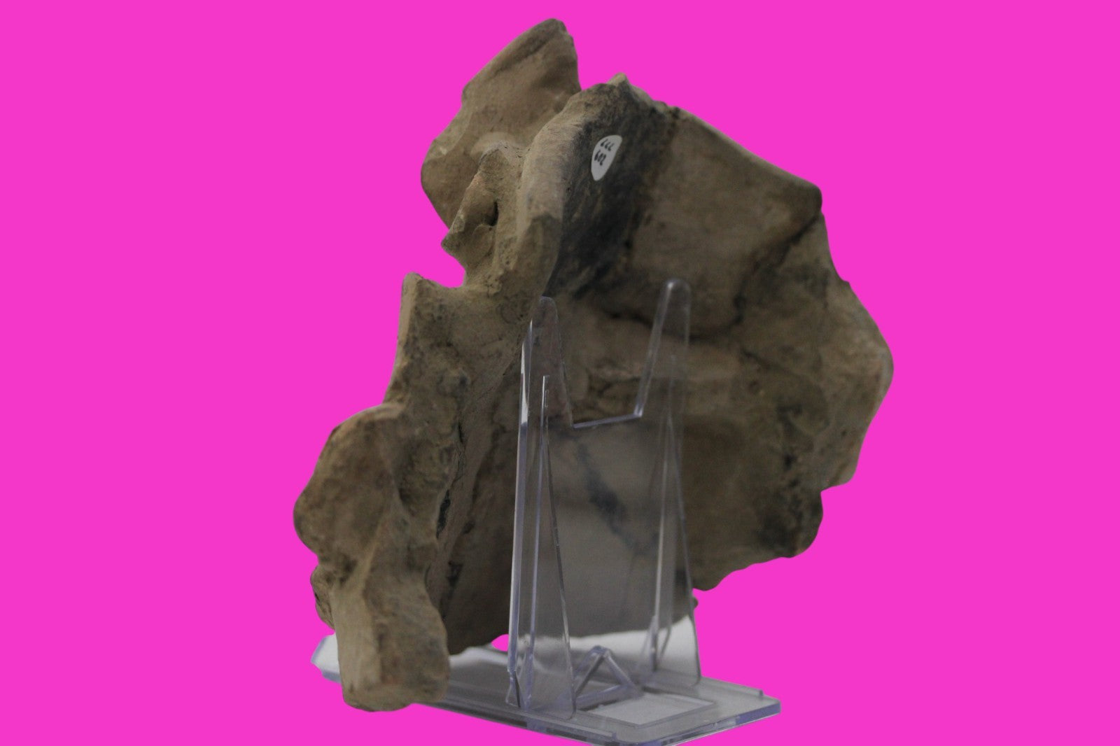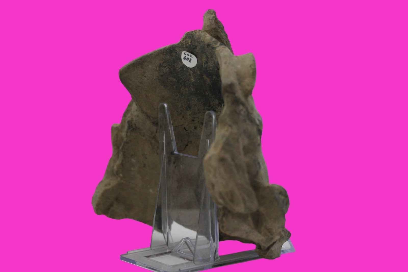 Dimensions: 5 ¾ inches tall, 7 ¼ inches wide, weighs 725 grams. Description: Large face ornamentation with ear spools and a crown with a crest. Repaired from large original pieces. Multiple areas of loss. Abrasions and wear consistent with age. Overall fair condition. Provenance: Ex. Linda Langdon Collection, acquired 1950’s. Ex. Artemis Fine Art Gallery 2016. Acquired by John McIntosh, MSE,MBA of Ancient Artifacts & Treasures, Winter Park, FL in 2016. Asigned to The Artifact City Collection in 2025.