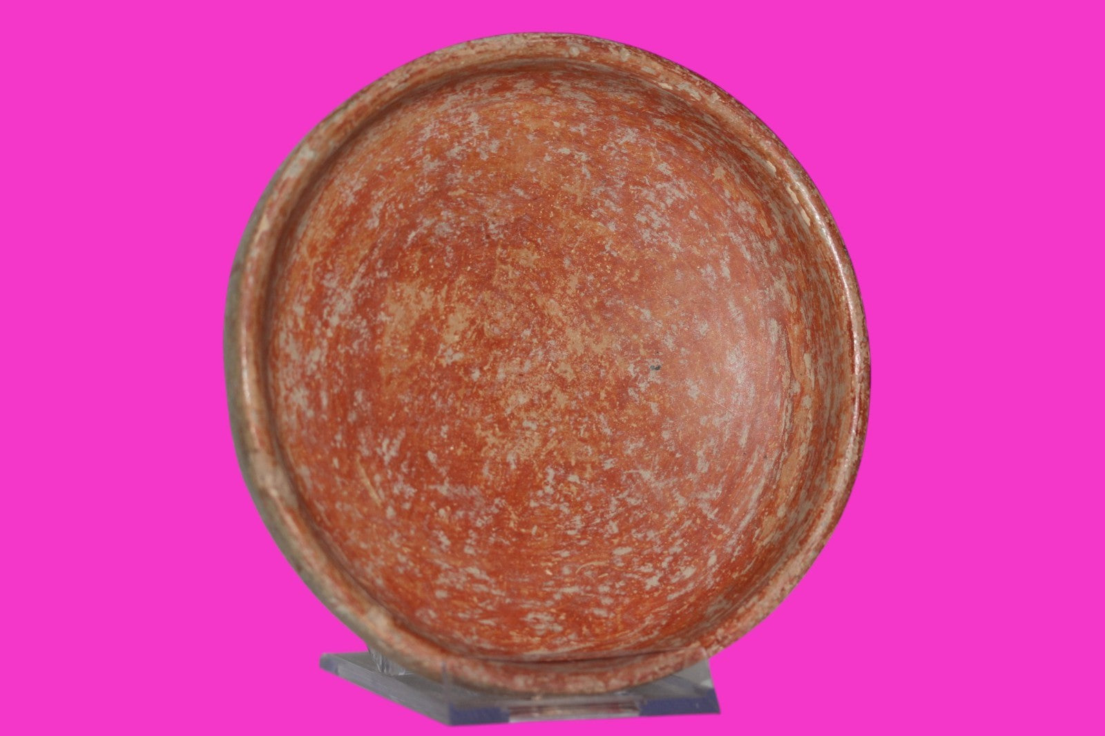 Dimensions: 2 inches tall, 5 ½ inches wide, weighs 291 grams. Description: Small redware pedestal bowl with cream-colored decorations. No repairs or restorations. Small chips on the rim and base. Abrasions, wear consistent with age. Overall excellent condition. Provenance: Ex. Private Tampa, FL collection, acquired in the 1980’s. Acquired by John McIntosh, MSE, MBA of Ancient Artifacts & Treasures, Winter Park, FL in 2020. Consigned to The Artifact City Collection in 2025.