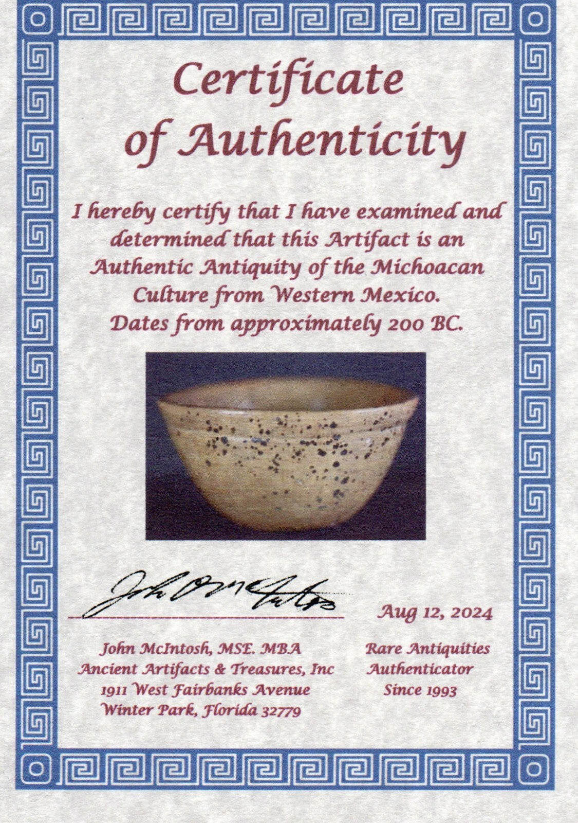Pre Columbian Artifact Authentic Michoacan Bowl Mexico Ex Arte Primitivo T15
