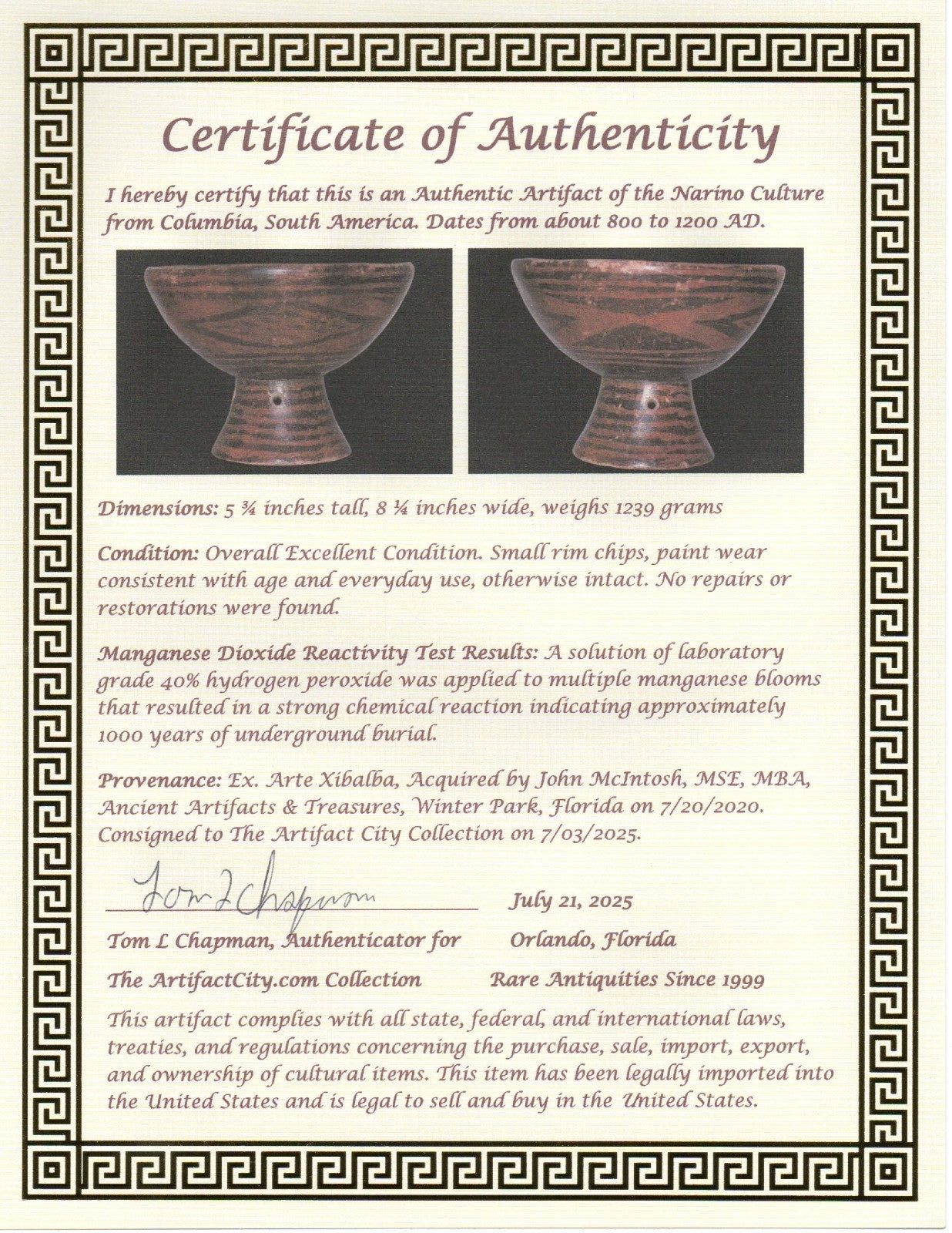 Pre Columbian Authentic Artifact Pedestal Bowl Narino Columbia 1000 AD COA J50