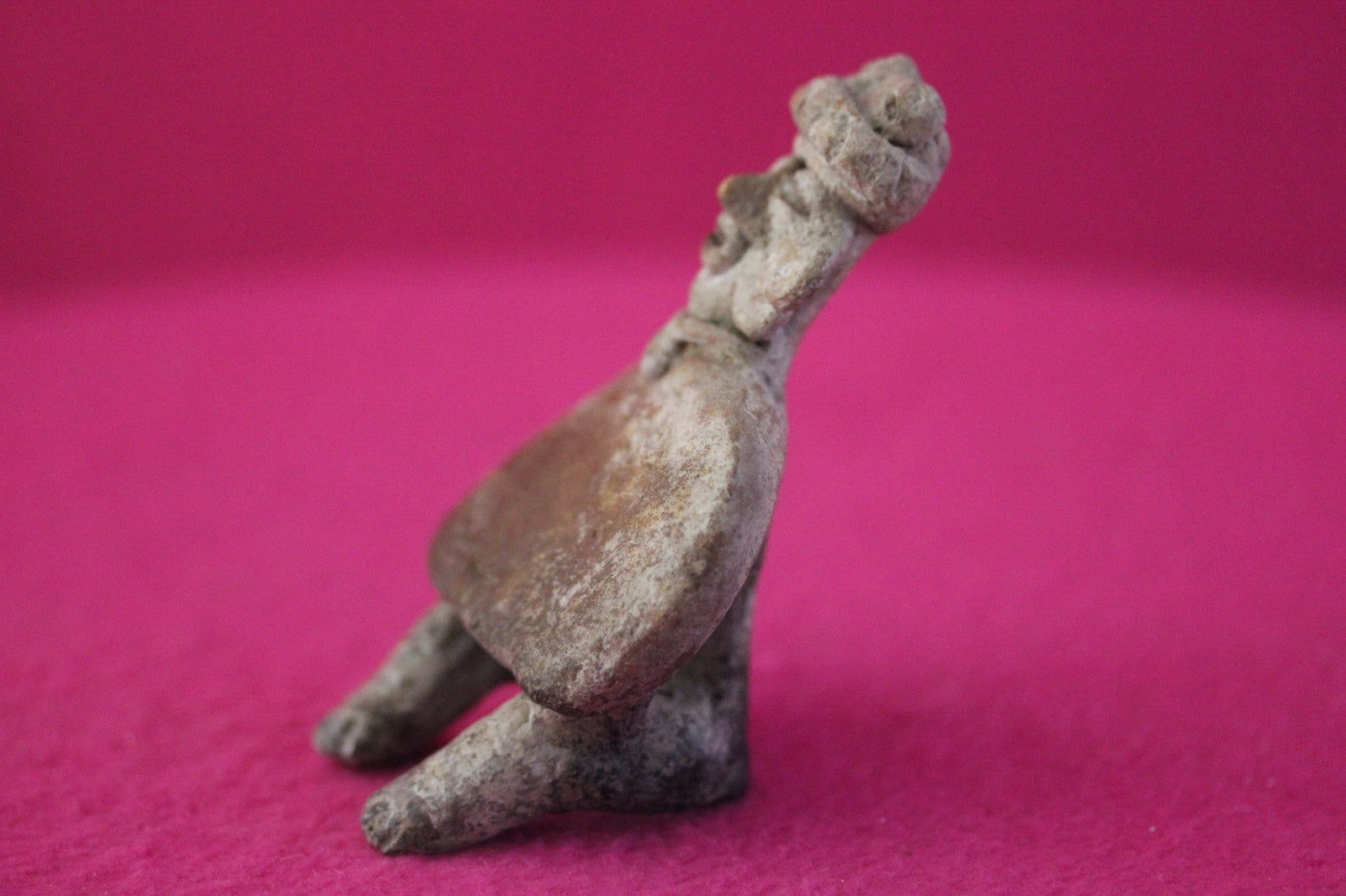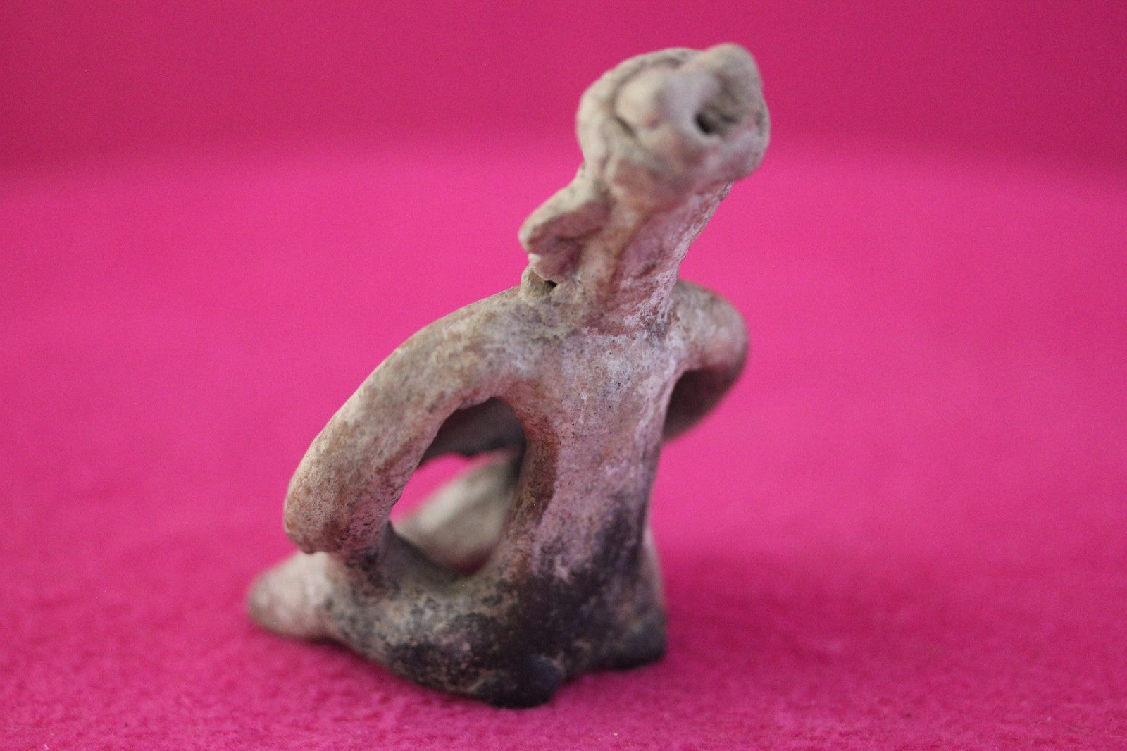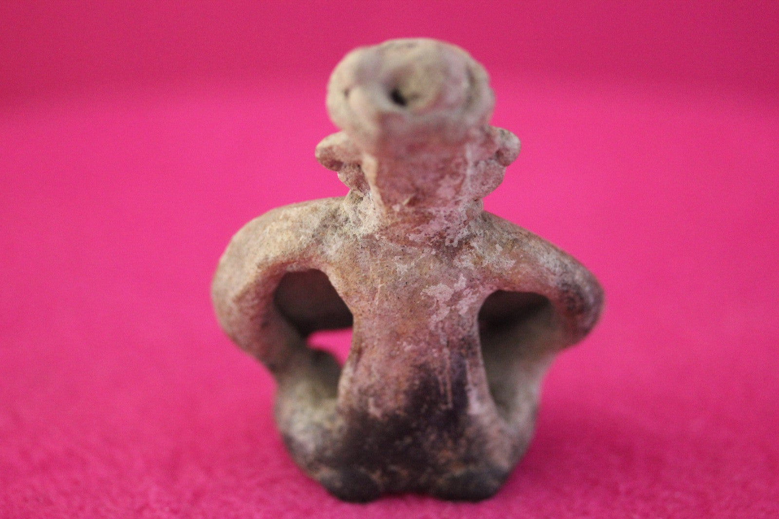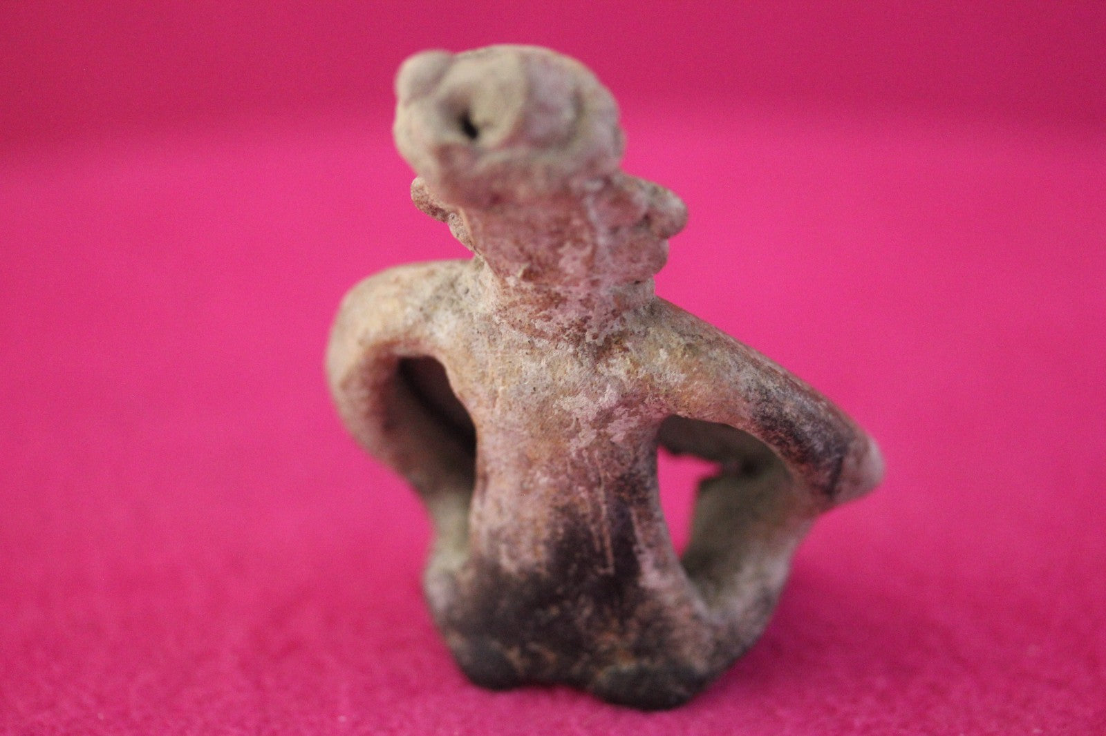 Dimensions: 3 ¼ inches tall, 2 ½ inches wide, weighs 81 grams.Description: Rare skirted seated tomb figure wearing headwear, necklace, large ear rings. Minor chips and abrasions. Otherwise intact. No repairs or restorations. Overall excellent condition.Manganese Dioxide Reactivity Test Results: A solution of laboratory grade 40% hydrogen peroxide was applied to multiple manganese blooms that resulted in a strong chemical reaction indicating approximately 2000 years of underground burial.Provenance: Ex. Arte Primitivo Fine Art Gallery, February 2025. Ex. Private Nevada collection. Ex. Dr. David Harner collection, Arkansas, 1950’s -1960’s, acquired mid 1960’s to mid 1990’s.