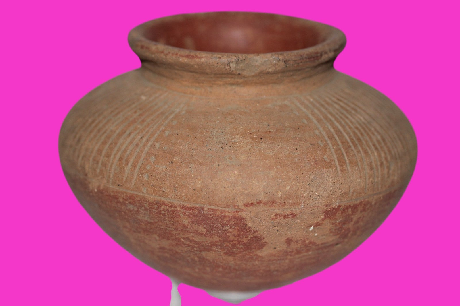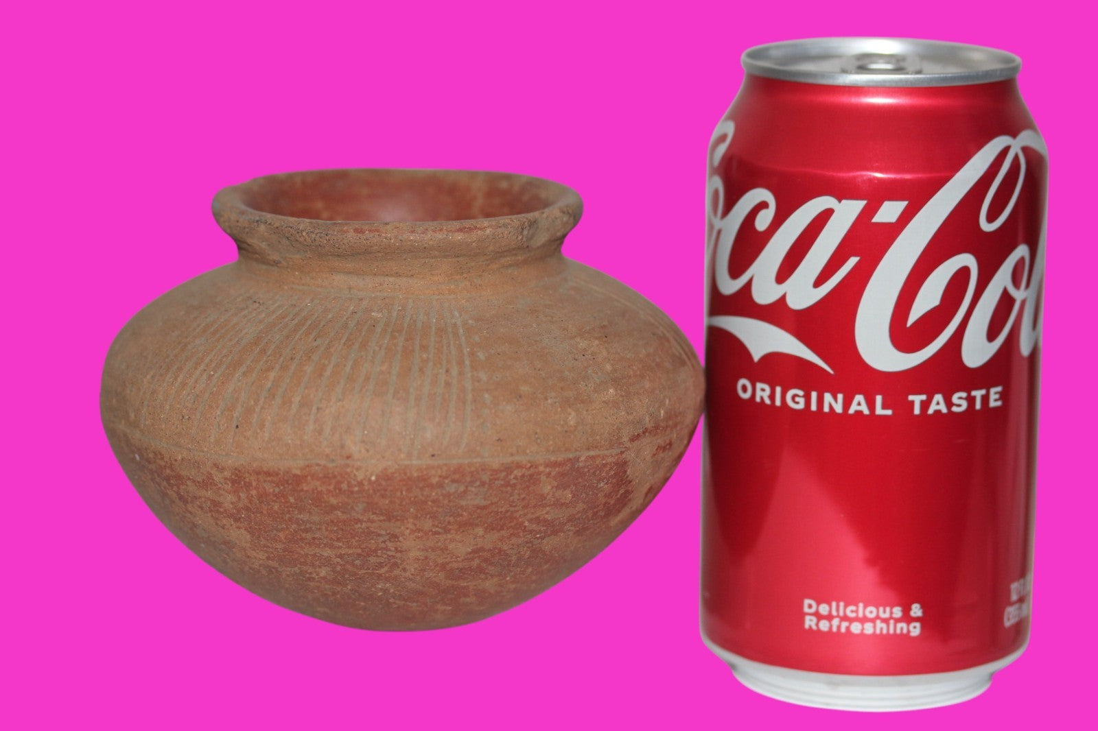 Dimensions: 3 inches tall, 4 ½ inches wide, weighs 265 grams. Description: Small olla decorated with incisions and red paint on the lower half. No repairs or restorations found. Rim chips, surface and paint loss. Otherwise intact. Abrasions, wear consistent with age. Overall fair condition. Provenance: Ex. Private Tampa, FL Collection, acquired in the 1990’s. Acquired by John McIntosh, MSE, MBA of Ancient Artifacts & Treasures, Winter Park, FL in 2010. Assigned to The Artifact City Collection in 2025.