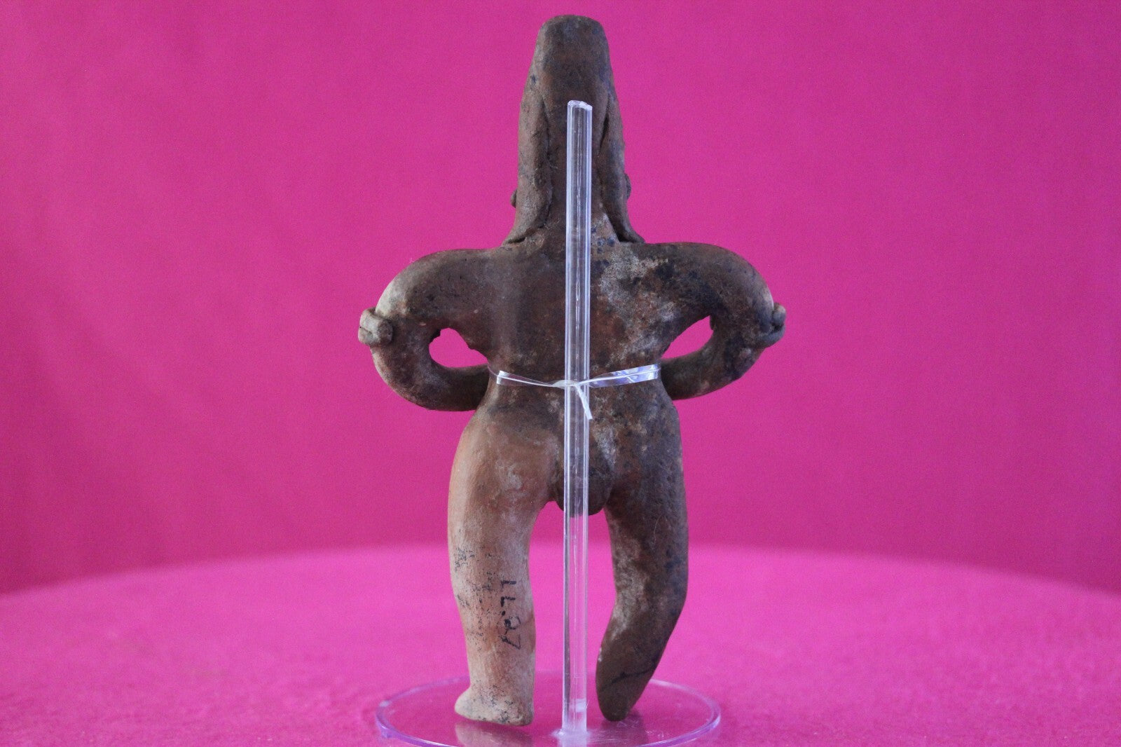 Dimensions: 7 ¼ inches tall, 4 ¼ inches wide, weighs 237 grams.Description: Museum quality large tomb figure wearing an elaborate head wrap and arm bands. Very long detailed hair. Loin cloth. No repairs or restorations noted. Overall outstanding condition.Manganese Dioxide Reactivity Test Results: A solution of laboratory grade 40% hydrogen peroxide was applied to multiple manganese blooms that resulted in a strong chemical reaction indicating approximately 2000 years of underground burial.Provenance: Ex. Arte Primitivo Fine Art Gallery, February 2025. Ex. Private Nevada collection. Ex. Dr. David Harner collection, Arkansas, 1950’s -1960’s, acquired mid 1960’s to mid 1990’s.