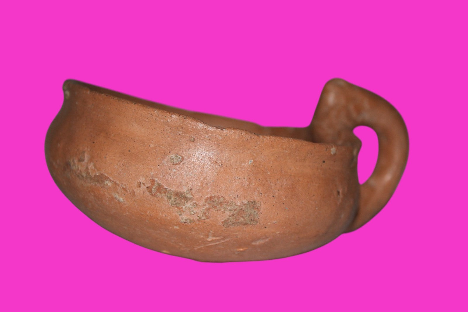 Dimensions: 2 inches tall, 4 ¾ inches wide, weighs 184 grams. Provenance: Ex. Private Jerusalem collection, Acquired in the aftermath of the 1967 Six Day War. Acquired by John McIntosh, MSE, MBA, Ancient Artifacts & Treasures, Winter Park, Florida in 2022. Acquired by The Artifact City collection in 2025. Description: Redware horned handle cup. Mineral deposits indicative of approximately 4000 years of underground burial. Small rim chips, stable age cracks, surface loss. No repairs or restorations found. Outstanding condition. Genesis 17:7-8 “I will always keep the promise I have made to you and your descendants, because I am your God and their God. I will give you and them the land in which you are now a foreigner. I will give the whole land of Canaan to your family forever, and I will be their God. “
