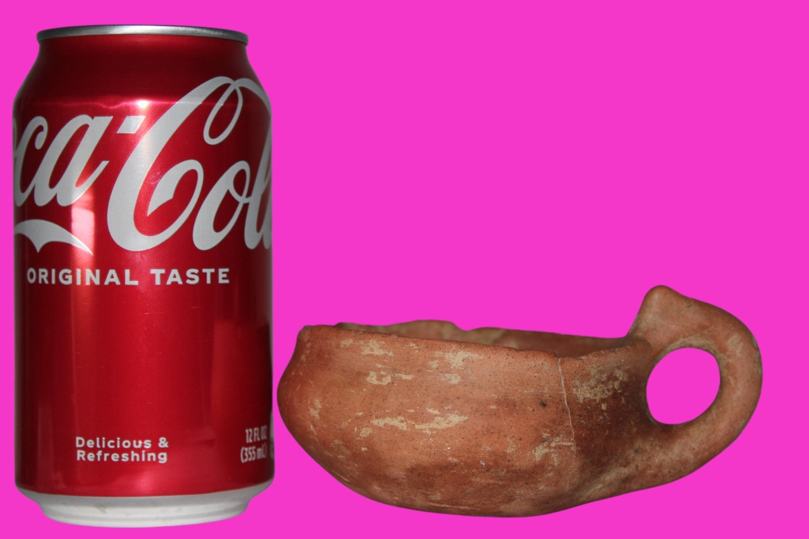 Dimensions: 2 ¼ inches tall, 5 inches wide, weighs 190 grams. Provenance: Ex. Private Jerusalem collection, Acquired in the aftermath of the 1967 Six Day War. Acquired by John McIntosh, MSE, MBA, Ancient Artifacts & Treasures, Winter Park, Florida in 2022. Acquired by The Artifact City collection in 2025. Description: Redware horned handle cup. Mineral deposits indicative of approximately 4000 years of underground burial. Small rim chips, stable age cracks, surface loss. No repairs or restorations found. Outstanding condition. Genesis 17:7-8 “I will always keep the promise I have made to you and your descendants, because I am your God and their God. I will give you and them the land in which you are now a foreigner. I will give the whole land of Canaan to your family forever, and I will be their God. “