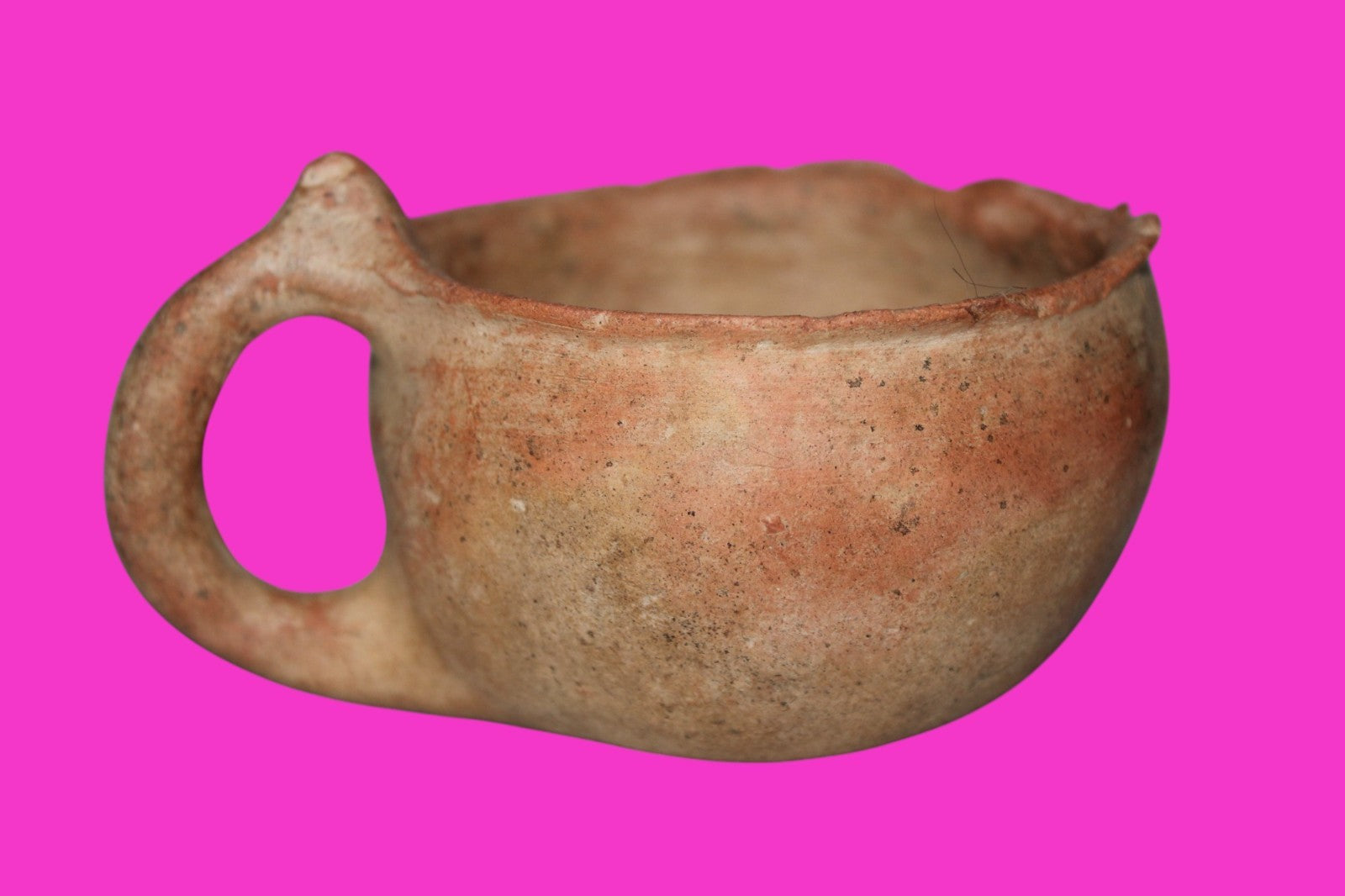 Dimensions: 2 ¼ inches tall, 4 ½ inches wide, weighs 159 grams. Provenance: Ex. Private Jerusalem collection, Acquired in the aftermath of the 1967 Six Day War. Acquired by John McIntosh, MSE, MBA, Ancient Artifacts & Treasures, Winter Park, Florida in 2022. Acquired by The Artifact City collection in 2025. Description: Redware horned handle cup. Mineral deposits indicative of approximately 4000 years of underground burial. Small rim chips, stable age cracks, surface loss. No repairs or restorations found. Outstanding condition. Genesis 17:7-8 “I will always keep the promise I have made to you and your descendants, because I am your God and their God. I will give you and them the land in which you are now a foreigner. I will give the whole land of Canaan to your family forever, and I will be their God. “