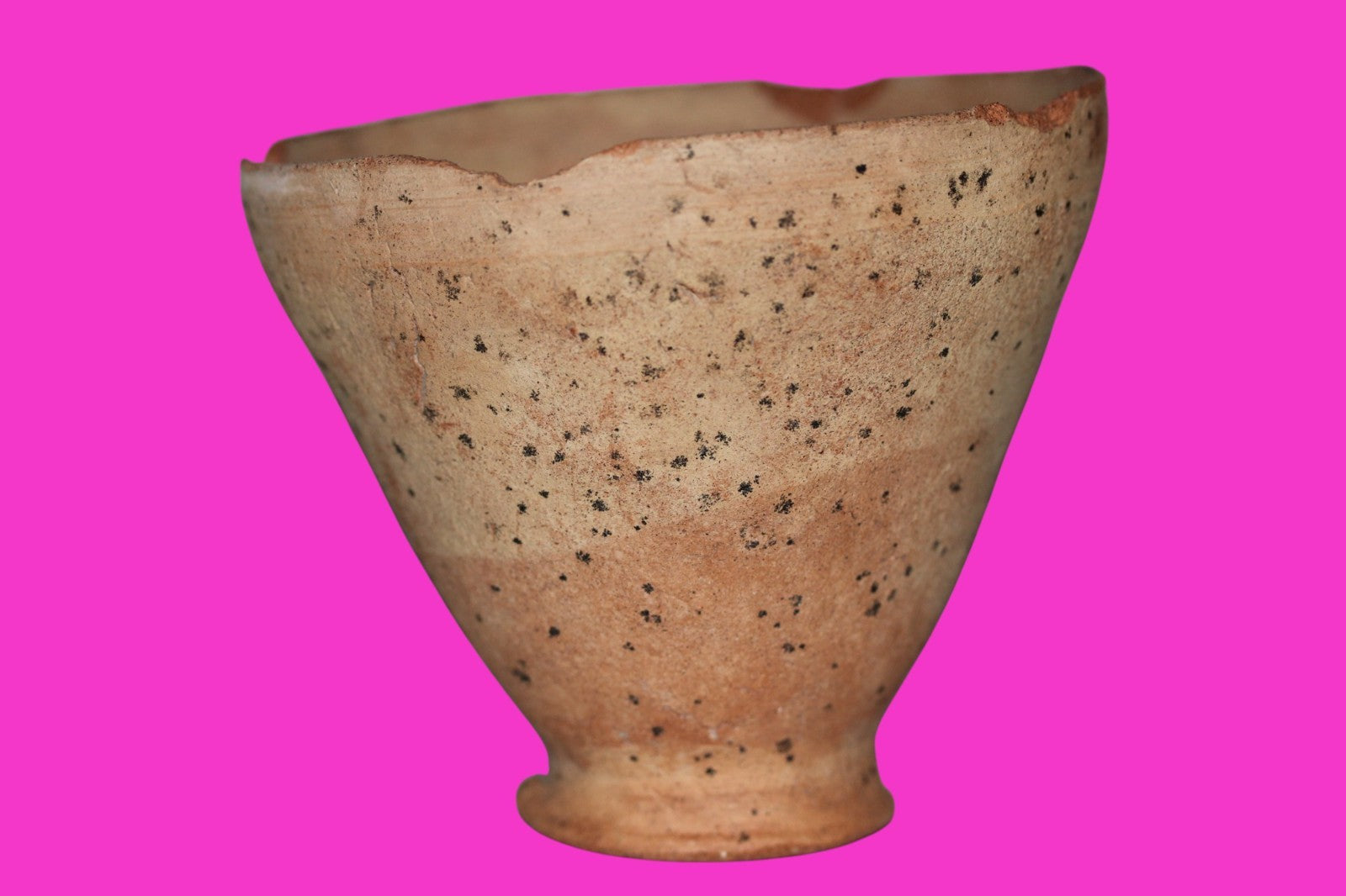 Dimensions: 4 inches tall, 4 ¾ inches wide, weighs 255 grams. Description: Conical shaped redware cup with a footed base. Top portion painted cream. No repairs or restorations found. Small ancient rim and base chips. Abrasions, wear, paint and surface loss consistent with age. Overall excellent condition. Manganese Dioxide Reactivity Test Results: A solution of laboratory grade 40% hydrogen peroxide was applied to multiple manganese blooms that resulted in strong chemical reactions confirming approximately 4000 years of underground burial. Provenance: Ex. Private Jerusalem collection, Acquired in the aftermath of the 1967 Six Day War. Acquired by John McIntosh, MSE, MBA, Ancient Artifacts & Treasures, Winter Park, Florida in 2022. Acquired by The Artifact City collection in 2025.
