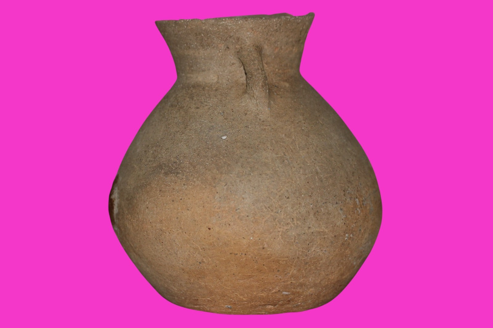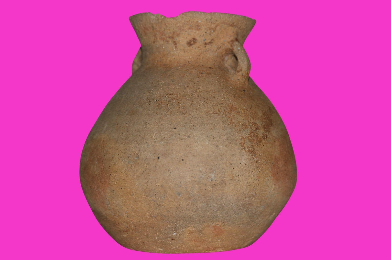 Dimensions: 6 ¼ inches tall, 5 ½ inches wide, weighs 618 grams. Provenance: Ex. Private Jerusalem collection, Acquired in the aftermath of the 1967 Six Day War. Acquired by John McIntosh, MSE, MBA, Ancient Artifacts & Treasures, Winter Park, Florida in 2022. Acquired by The Artifact City collection in 2025. Description: Large redware bulbous jar with double handles. Multiple rim chips in antiquity. 1 inch prodding hole un-professionally repaired. Otherwise intact Abrasions and wear consistent with everyday use. Mineral deposits indicative of 4000 years of underground burial. Overall Fair condition. Genesis 17:7-8 “I will always keep the promise I have made to you and your descendants, because I am your God and their God. I will give you and them the land in which you are now a foreigner. I will give the whole land of Canaan to your family forever, and I will be their God. “