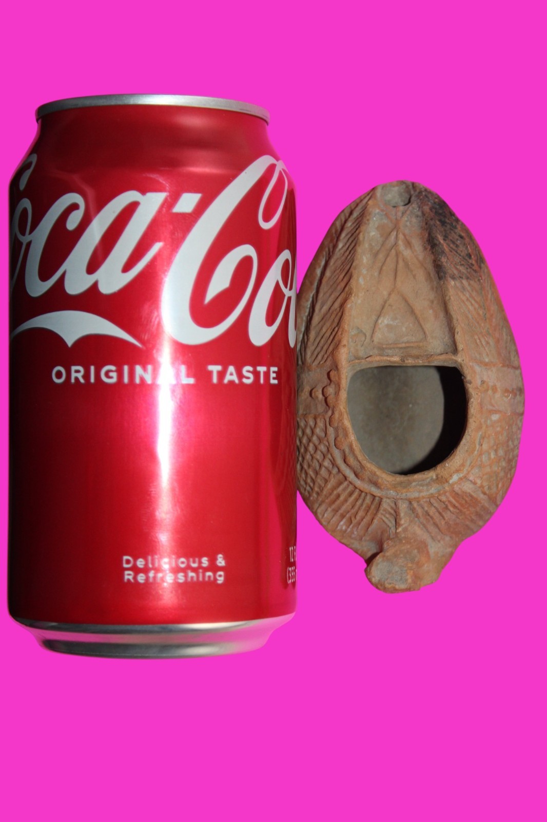 Dimensions: 4 inches long, 2 ¼ inches wide 1 ½ inches tall, weighs 87 grams Provenance: Excavated in the aftermath of the 1967 Six Day War in Judea. Acquired by the Hamadian Antiquities Gallery in The Old City of Jerusalem. Export to the United States approved by the Israeli Antiquities Authority in 2025. Acquired by The Artifact City Collection in September 2025. Description: Terracotta oil lamp made from a two part mold. Oil from animal fat or olives were used with a wick to provide lighting. Oil lamps were mass produced in large quantities throughout the Holy Land and surrounding areas. Their use was significant in both Jewish and early Christian religious ceremonies. They were the equivalent of today’s “light bulbs”.