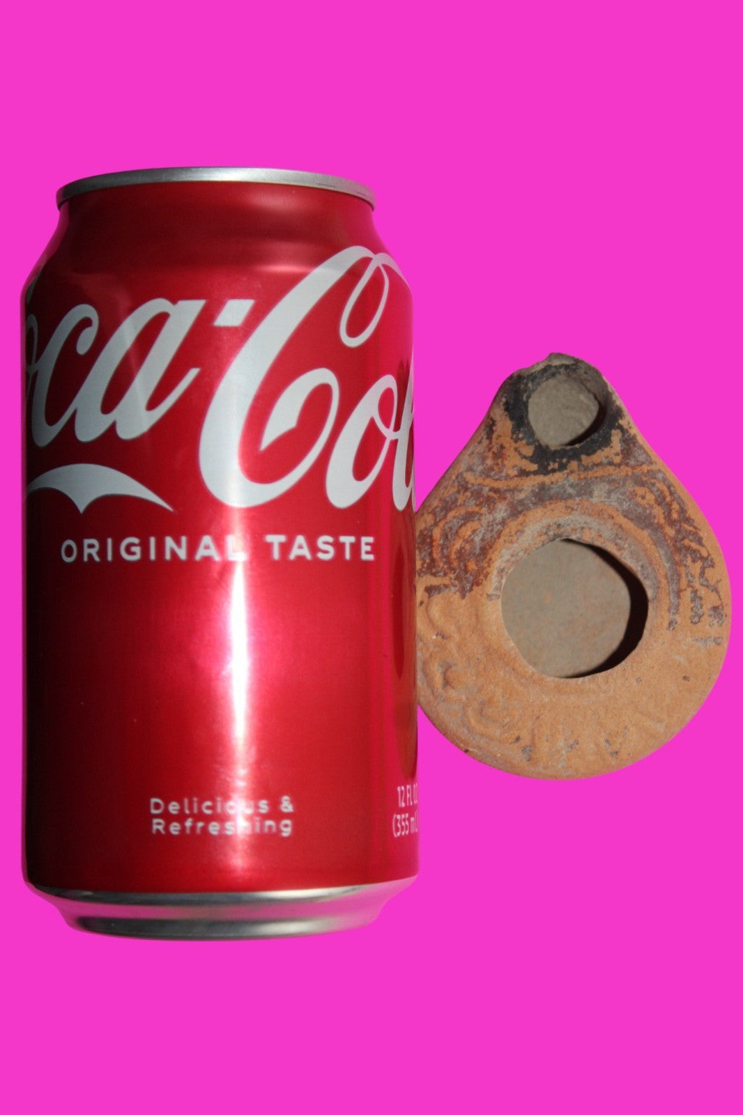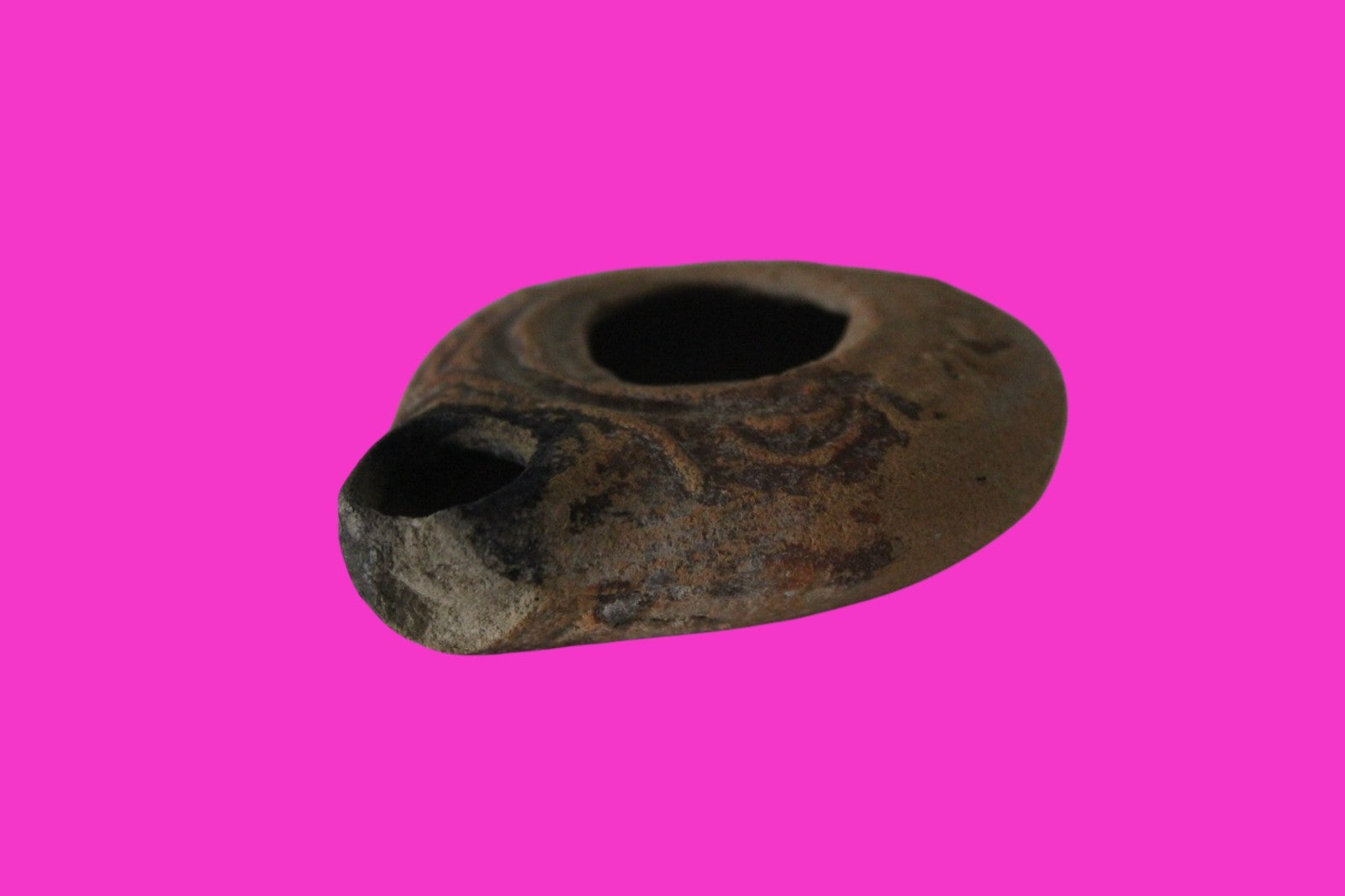 Dimensions: 3 inches long, 2 ¼ inches wide, 1 inch tall, weighs 43 grams. Provenance: Excavated in the aftermath of the 1967 Six Day War in Judea. Acquired by the Hamadian Antiquities Gallery in The Old City of Jerusalem. Export to the United States approved by the Israeli Antiquities Authority in 2025. Acquired by The Artifact City Collection in September 2025. Description: Terracotta oil lamp made from a two-part mold. Oil from animal fat or olives were used with a wick to provide lighting. Oil lamps were mass produced in large quantities throughout the Holy Land and surrounding areas. Their use was significant in both Jewish and early Christian religious ceremonies. They were the equivalent of today’s “light bulbs”.