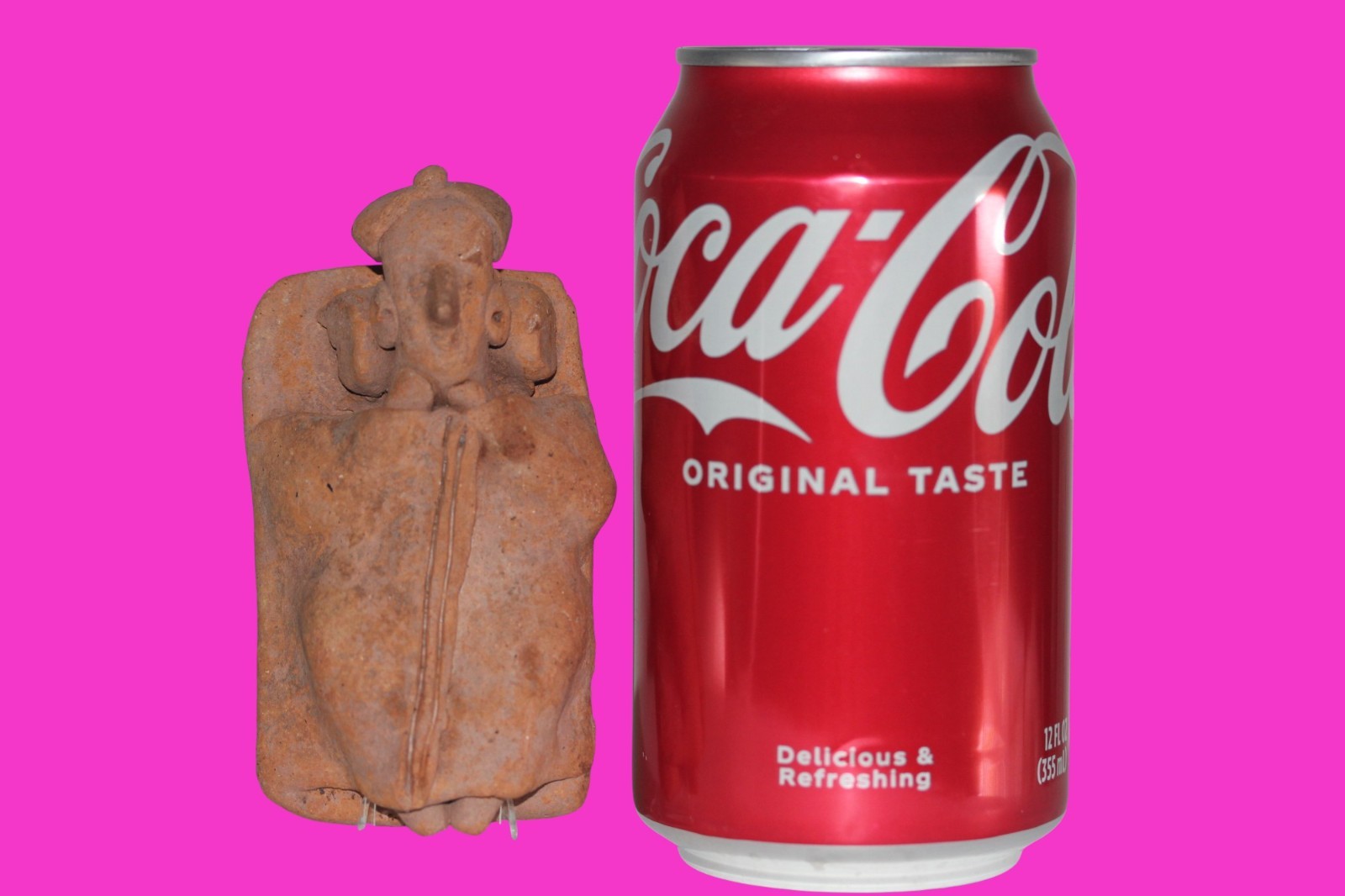 Dimensions: 3 ¾ inches long, 2 inches wide, 1 inch thick, weighs 117 grams. History: Shaft tomb burial figure strapped to a board in preparation for burial. The deceased were lowered through long shafts into tombs where workers arranged them in their final resting places, often alongside previous deceased family members. Tomb figures like this one were placed with the fallen to provide companionship, guidance, and protection in the afterlife. Description: Figure wearing headgear and large ear ornaments wrapped in a decorated blanket with a pillow under the head. No repairs or restorations found. Mineral deposits consistent with approximately 2000 years of underground burial. Intact. Overall outstanding condition. Provenance: Ex. Private Nevada collection. Ex. Dr. David Harner collection, Arkansas, 1950’s -1960’s.Ex. Arte Primitivo Fine Art Gallery, February 2025. Acquired by The Artifact City Collection in 2025.