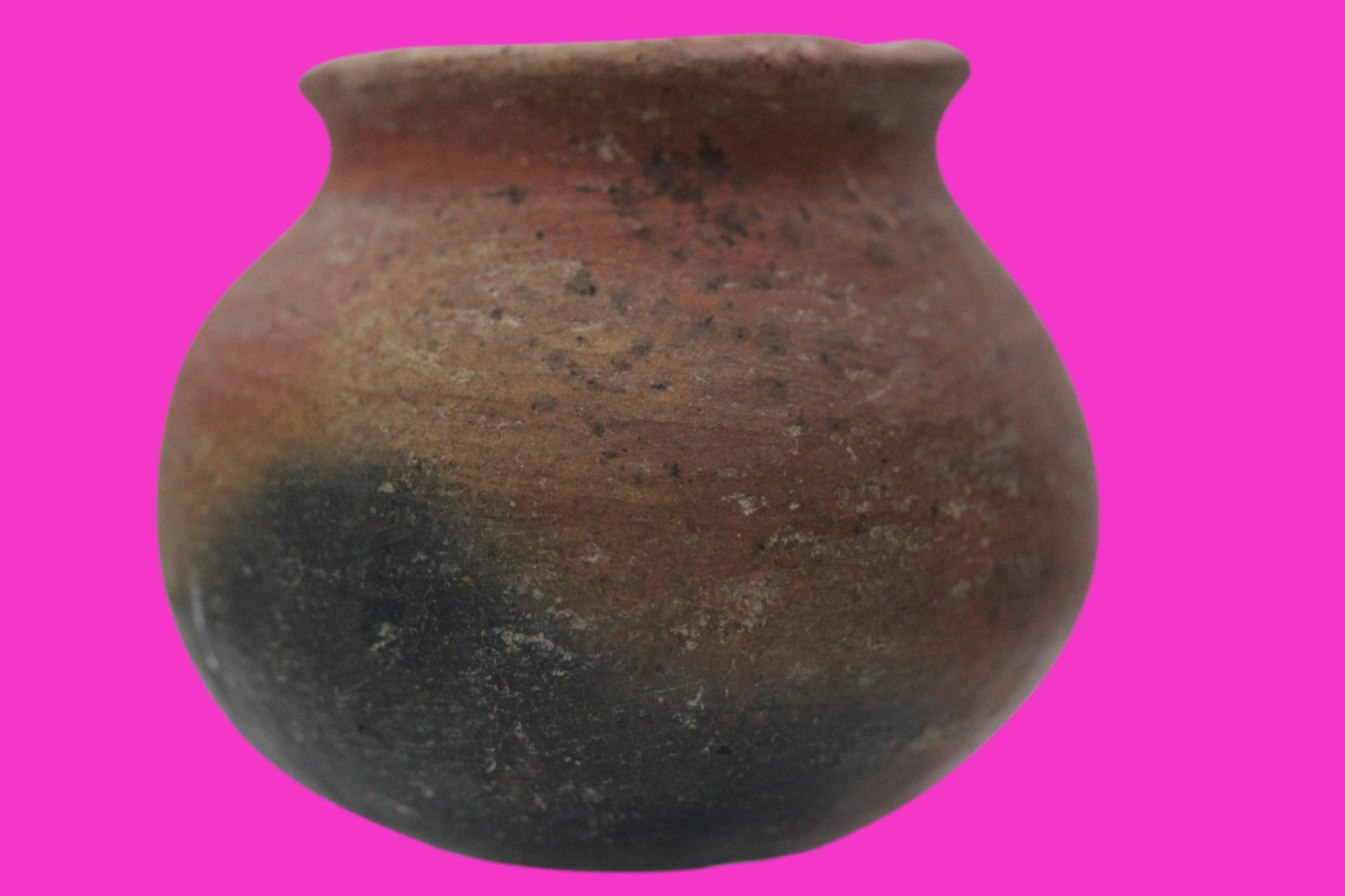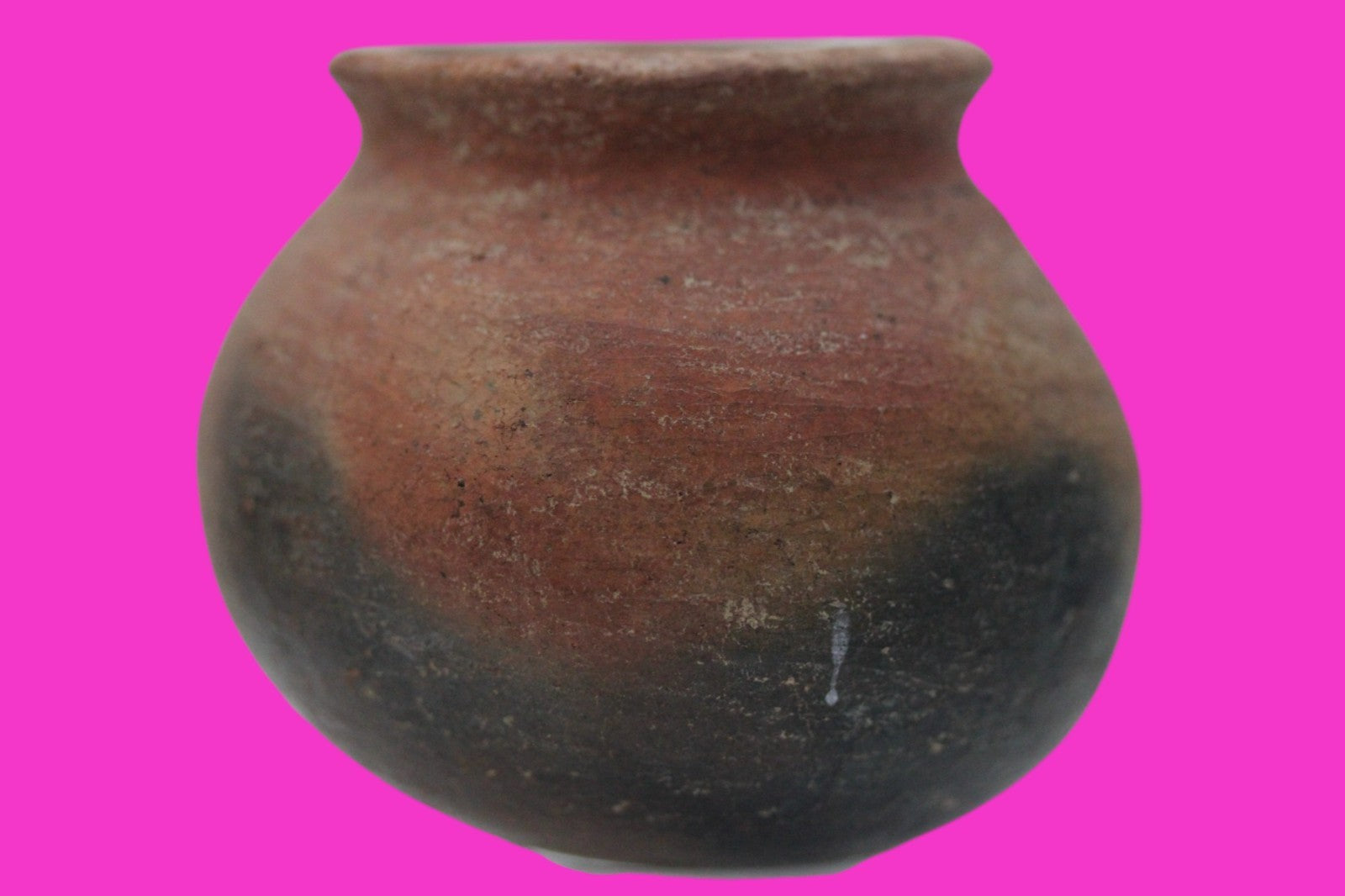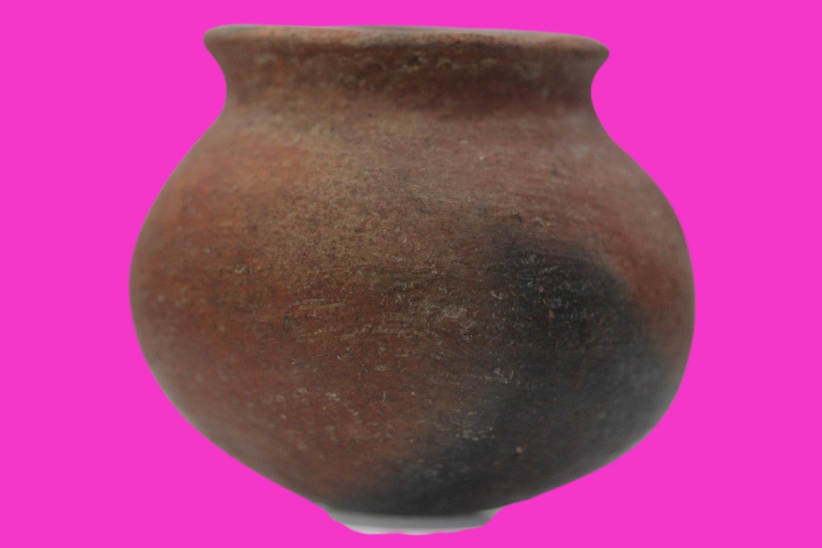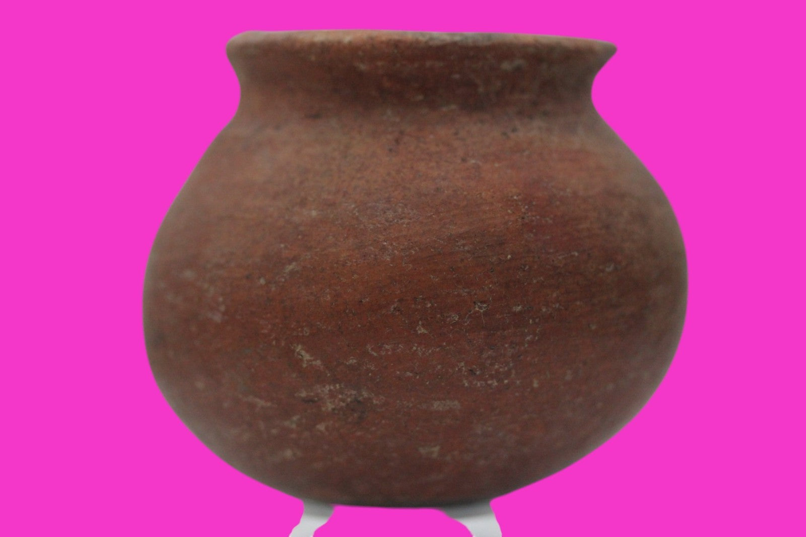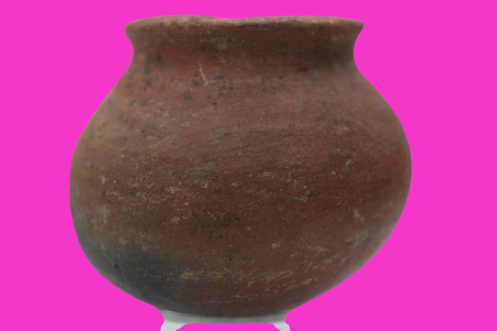Dimensions: 3 ½ inches tall, 4 inches wide, weighs 339 grams.Description: Solid redware cooking pot. Bottom and some sides blackened from open flames. No repairs or restorations. Small rim chips, minor abrasions, otherwise intact. Overall good condition.Manganese Dioxide Reactivity Test Results: A solution of laboratory grade 40% hydrogen peroxide was applied to multiple manganese blooms that resulted in a strong chemical reaction indicating approximately 2000 years of underground burial.Provenance: Ex. Private Longwood, Florida collection. Collected in the 1990’s. Acquired by John McIntosh, MSE, MBA of Ancient Artifacts & Treasures, Winter Park, Florida in 2023. Consigned to The PreColumbian Collection in 2025.